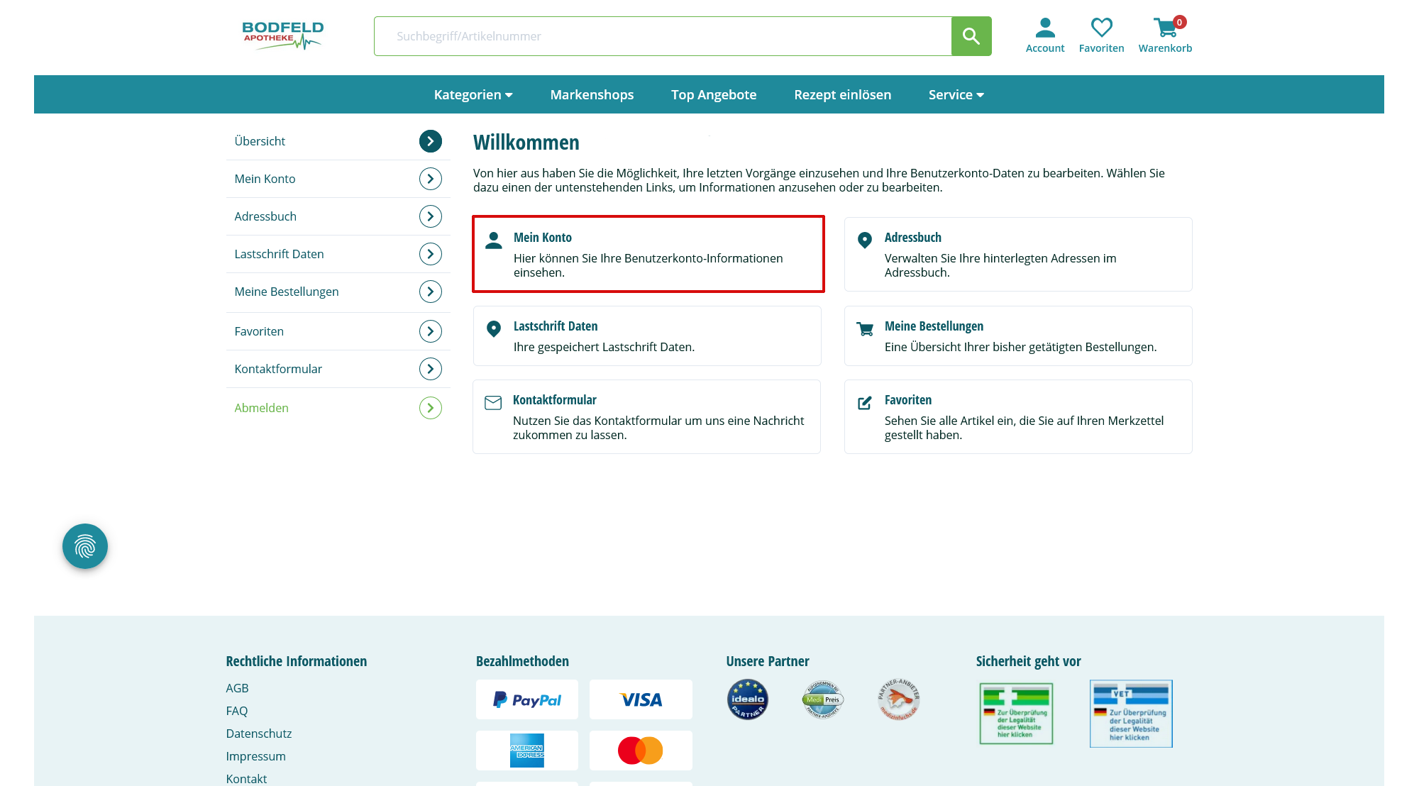 - Sofern Sie bereits über ein Benutzerkonto verfügen, können Sie nach der erfolgreichen Anmeldung über die entsprechenden Schaltflächen alle relevanten Daten zu ihrem Kundenkonto selbstständig bearbeiten.